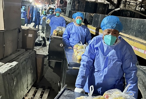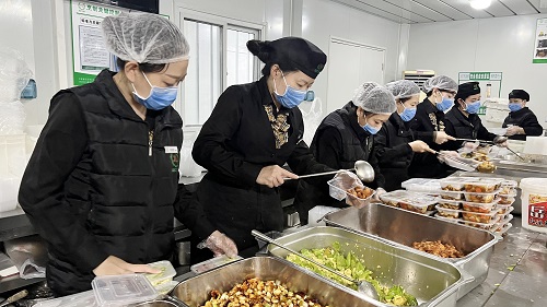 10月,餐廳僅有員工33人,每天卻要保障近5000人次的用餐。餐廳人員從白天到黑夜連軸轉(zhuǎn),隨時要保障醫(yī)護(hù)人員的用餐,時刻處于緊張的忙碌中,而且由于沒有專用的電梯,所有餐食全靠人工運(yùn)輸,工作強(qiáng)度可想而知。鑒于地壇醫(yī)院餐廳的保障強(qiáng)度,11月18日,公司從其他餐廳協(xié)調(diào)抽調(diào)12名員工支援,稍微緩解了現(xiàn)場的工作壓力。但是由于防疫需要,餐廳總有員工被封閉隔離,無法全員上崗。然而,不管人員如何變動,餐廳其他人員總能及時頂上,保證供餐,再次展現(xiàn)出健力源人的團(tuán)隊(duì)精神和大局意識。